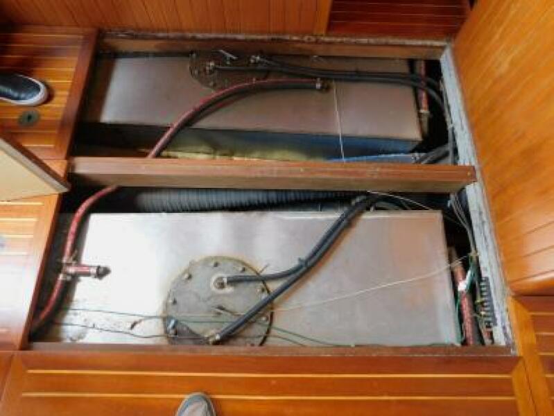 Great cruiser, liveboard or Gunkholer. Sleeps 5, Split head arrangement, Full Galley, Dual AC/Heat, Electric windlass anchor, St Croix Davits, Pudgy Dinghy and Torqeedo Electric motor. Original Mast and Boom, Raymarine Electronic's including Color Chartplotter/GPS and Radar. Floscan and Autopilot. 2 New AGM 8-D Batteries, New Starter, Very Miserly on fuel too