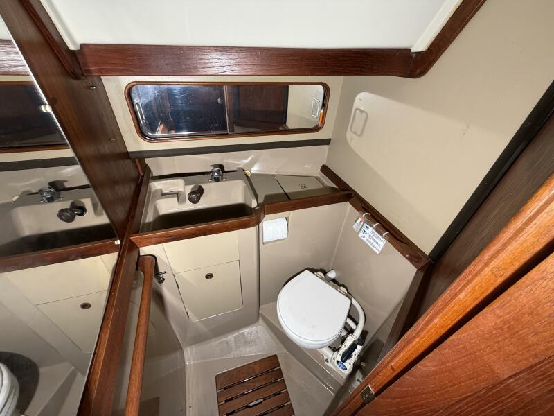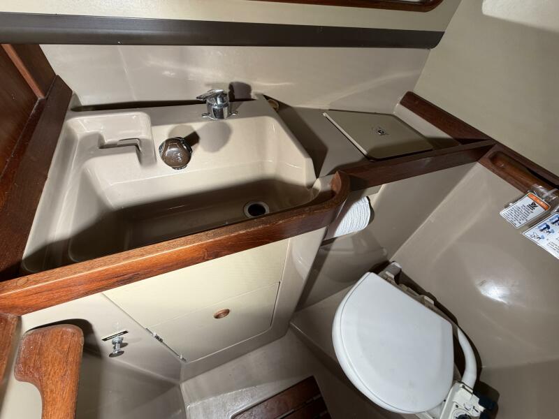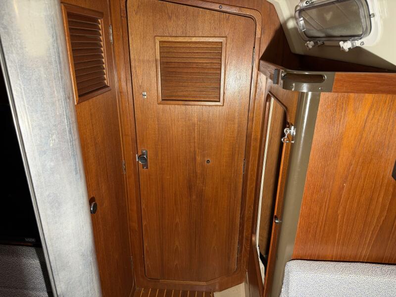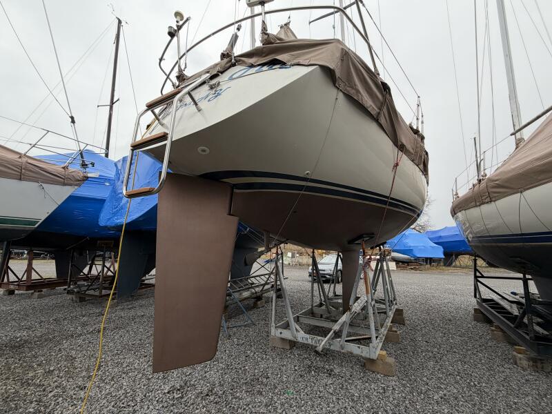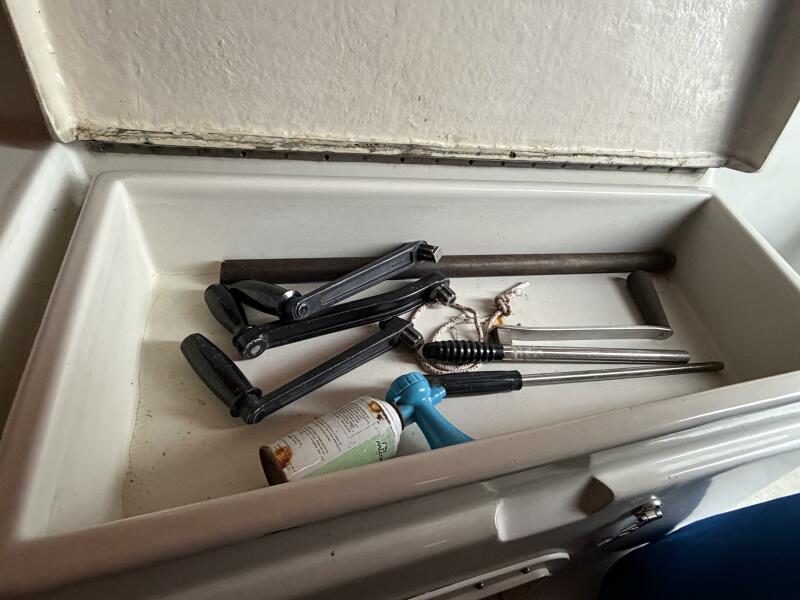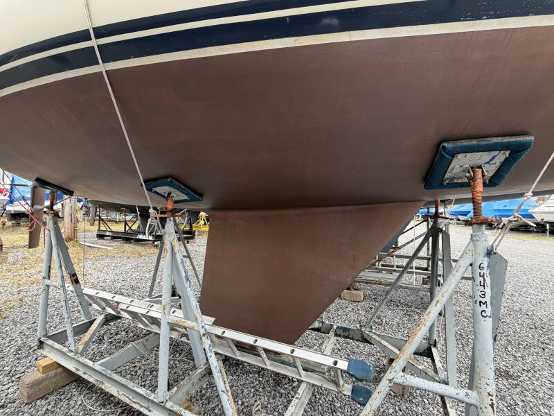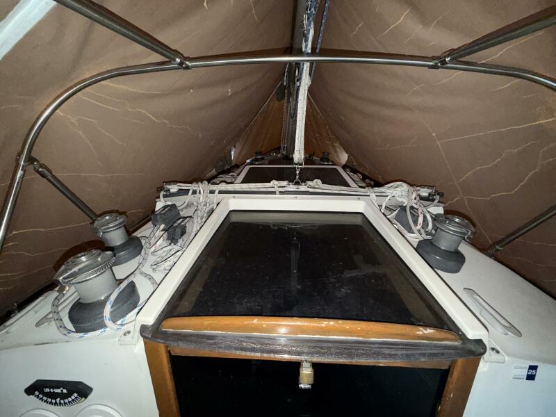 A previous owner has taken 6 inches of lead off the bottom of the keel and then placed the lead into the bilges where it was glassed in place. This reduces the draft to around 6 Feet without hurting the boat's performance.