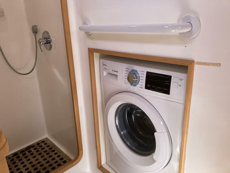the washing machine liberally underway and to flush to two heads with fresh water , chosen to avoid that salt water smell from the inside of the boat. If the wind picks up you can shut all that machinery down, raise the sails and enter a world of calm. Raynad is powered while sailing by