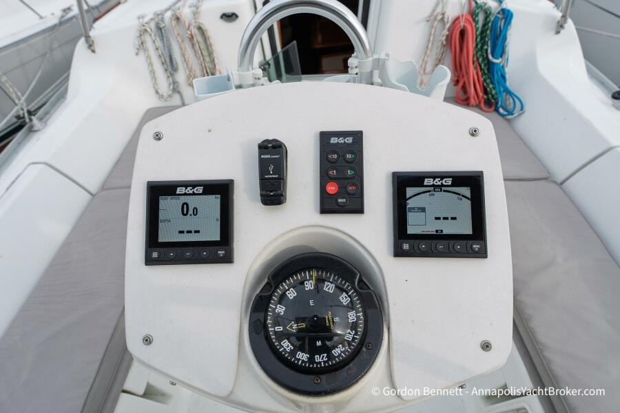 She’s been modernized where it matters, with a repowered diesel, lithium power, solar, and a Victron energy system that lets you stay out longer and worry less. At the helm, updated B&G electronics keep things clean, intuitive, and confidence-inspiring whether you’re daysailing or stretching your range.