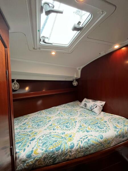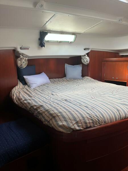 The Oceanis 42CC benefits from all Beneteau's cruising savoir faire. . A past pioneer of the bathing platform for looks and practicality, Beneteau has revived the classic transom but managed to keep all the advantages of the bathing platform. This innovation has resulted in a large aft deck area flanked by 2 side lockers accessible from the deck, a sliding section concealing a two-tread staircase down to a gangway made from the drop-down transom. The transom/gangway pulls up shut for close-up, stern-to mooring on pontoon or quay. Other features of the 42CC : the spacious, well laid-out accommodation is highly 'owner' orientated, comfortable whatever the sea state and has easy access to engine and technical areas. All the 'Clipper' equipment comes as standard. Not forgetting all the advantages of a center cockpit well protected by an opening windscreen ; safe, easy and highly maneuverable.