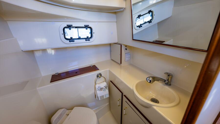The flybridge + sedan layout, uncommon in this size range, provides excellent visibility underway and a comfortable gathering space at anchor. Inside, the Camano 31 offers bright sightlines, practical storage, and a layout that feels surprisingly spacious for a 31‑footer. Owners also benefit from a strong and active community, along with solid parts support that continues to make ownership straightforward.