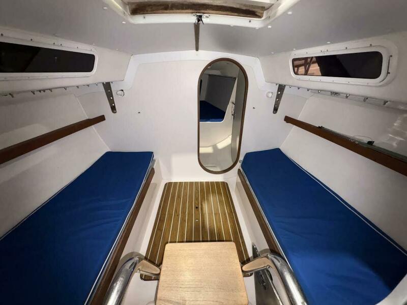 • GRP molded main structural bulkhead, bonded to hull and deck as support for shroud chainplates with single opening to head and forepeak.