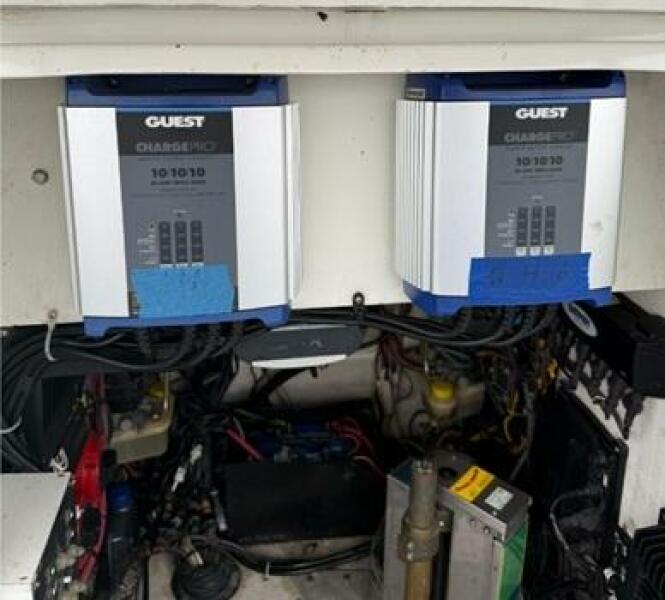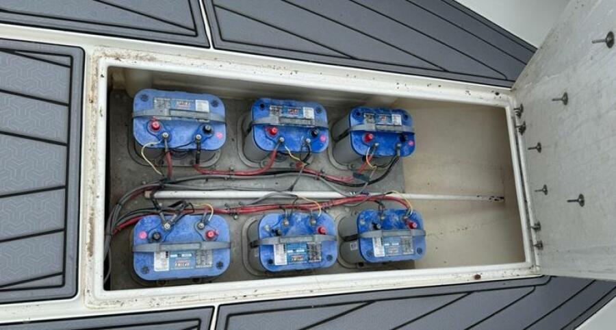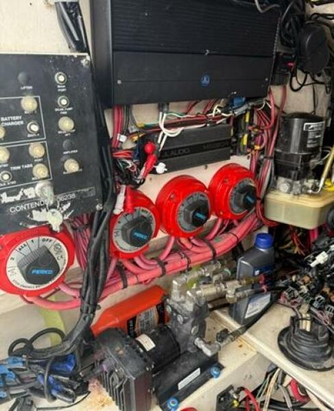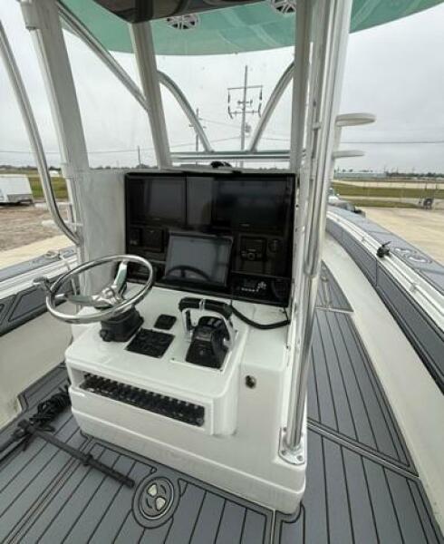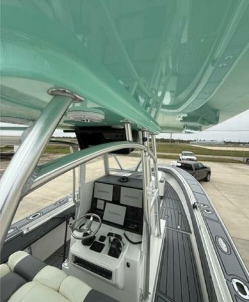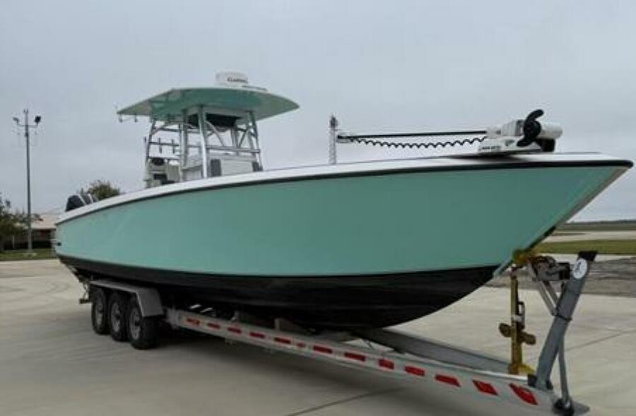 In 2023 the boat has had new paint inside and out, new seating new fiberglass hardtop with alum. frame and led lighting, with EZ2CY front and side, partial enclosure, new sea Deck, new Garmin electronics including radar and autopilot, Sitex\Koden side scan, new power assist steering pump, under gunnel electric plugs for electric fishing reels, new Minn Kota trolling motor, and all new lower unit tail shafts, seals, all power tilt seals replaced. You will also appreciate its dual 50-gallon livewells, and enormous fish box capacity suitable for all your fishing adventures.