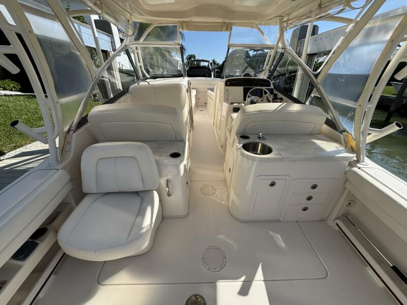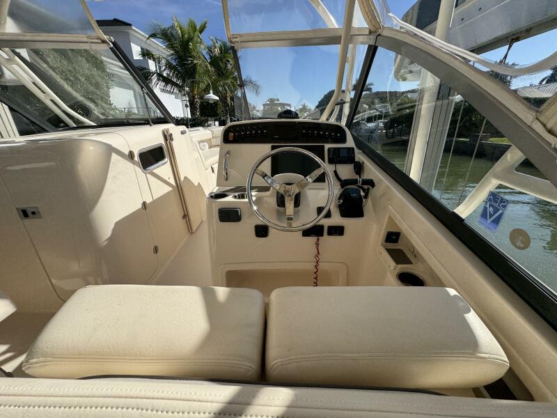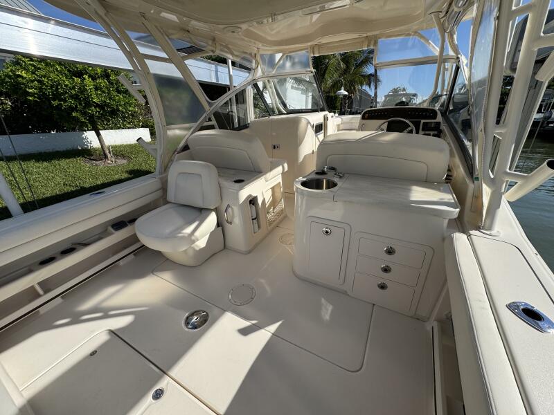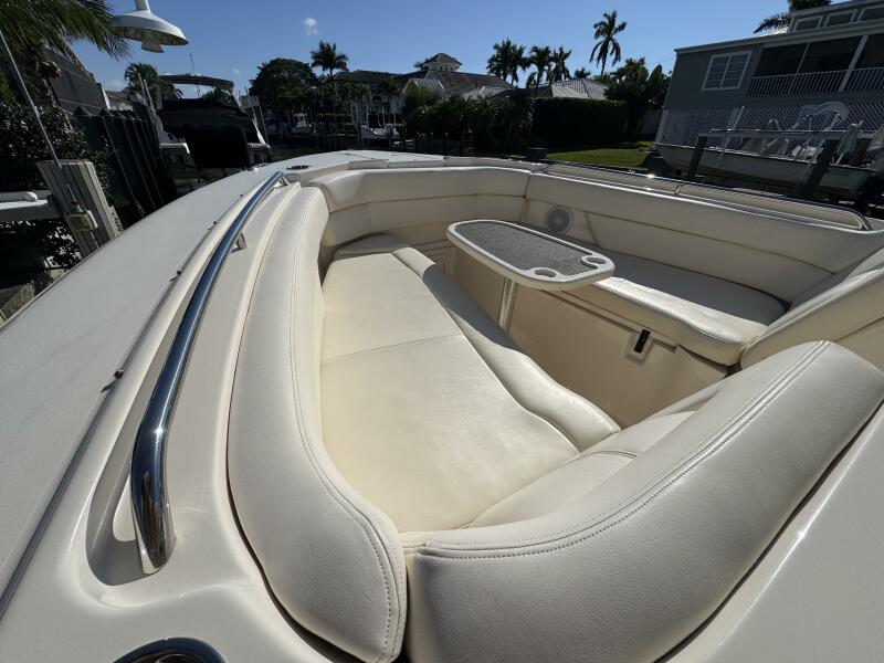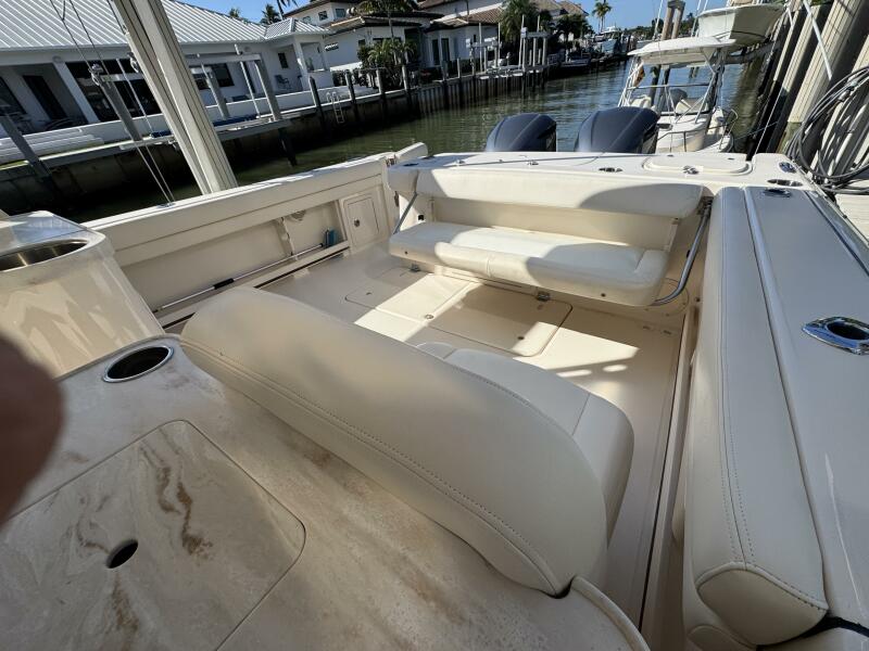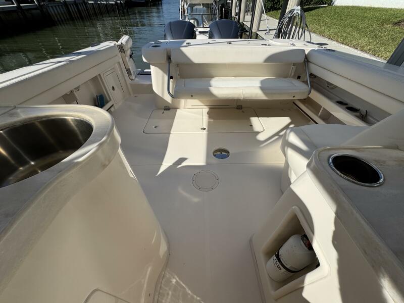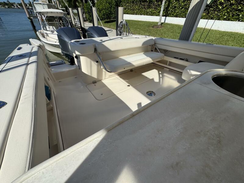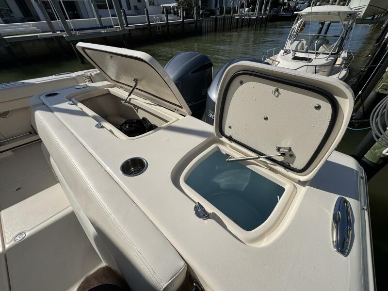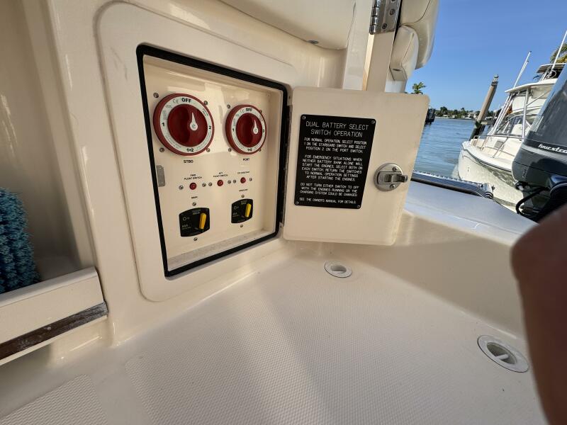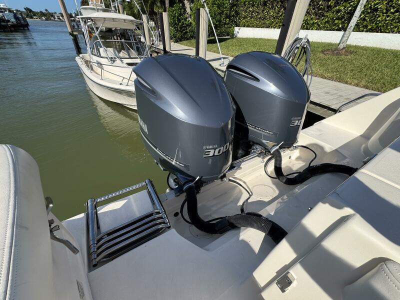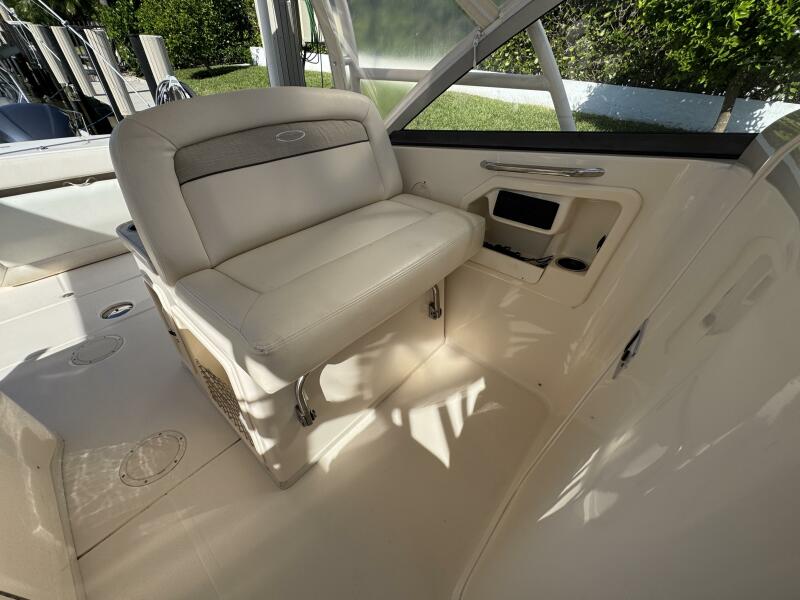 This 2016 Grady-White Freedom 307 stands out as a well-maintained, single owner, dual console. She is powered by twin Yamaha F300s with just 300 hours and full-service records. Key mechanical highlights include a bow thruster, anchor windlass with remote switch, 3-bank battery charger, extra batteries, hydraulic trim tabs, and engine flush connections. This boat does not have bottom paint and has spent her life on a lift or stored inside. Her electronics suite features a Garmin GPSMAP 1243XSV, ICOM M510 VHF/GPS, SiriusXM weather receiver, and Fusion MS-RA670 audio system with six speakers and dual remotes.