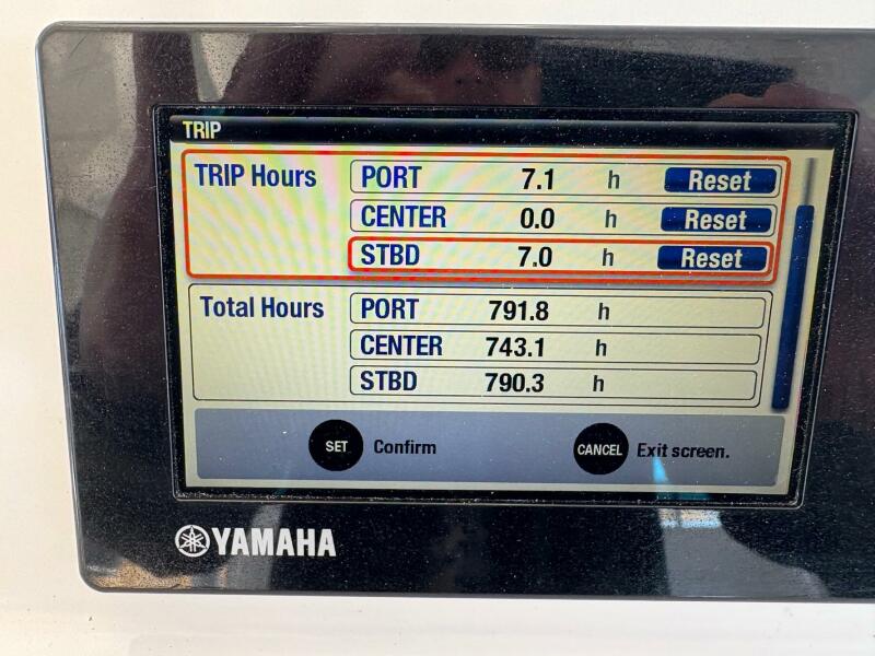 Powered by three Yamaha F350NCC outboard engines, each with 790 hours, it delivers an impressive cruising speed of 34 knots and a maximum hull speed of 48 knots, making it perfect for exhilarating adventures on the water.
