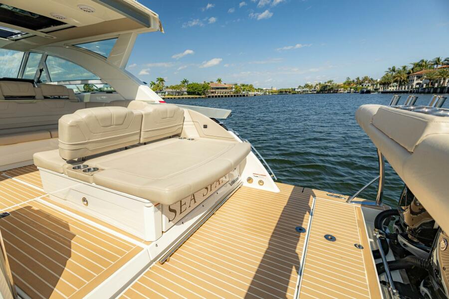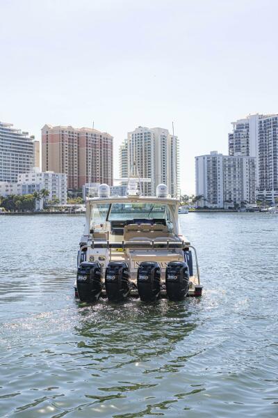 The 2018 Formula 430 Super Sport Crossover, a remarkable cruiser that embodies luxury and performance. With an overall length of 43 feet, this vessel is designed for those who appreciate both style and functionality. The deep Vee hull, crafted from durable fiberglass, ensures a smooth and stable ride, perfect for both leisurely outings and adventurous excursions. Powered by four Mercury Verado outboard engines, each delivering an impressive 350 horsepower, the Seaspan promises exhilarating speed and agility on the water. With only 475 hours of use, these engines are in excellent condition, ready to take you on unforgettable journeys. Inside, the accommodation features a cozy cabin and a well-appointed head, providing comfort for you and your guests. The thoughtful design and high-quality materials make this boat a true gem for cruising enthusiasts. Experience the thrill of the open water with the Formula 430 Super Sport Crossover!