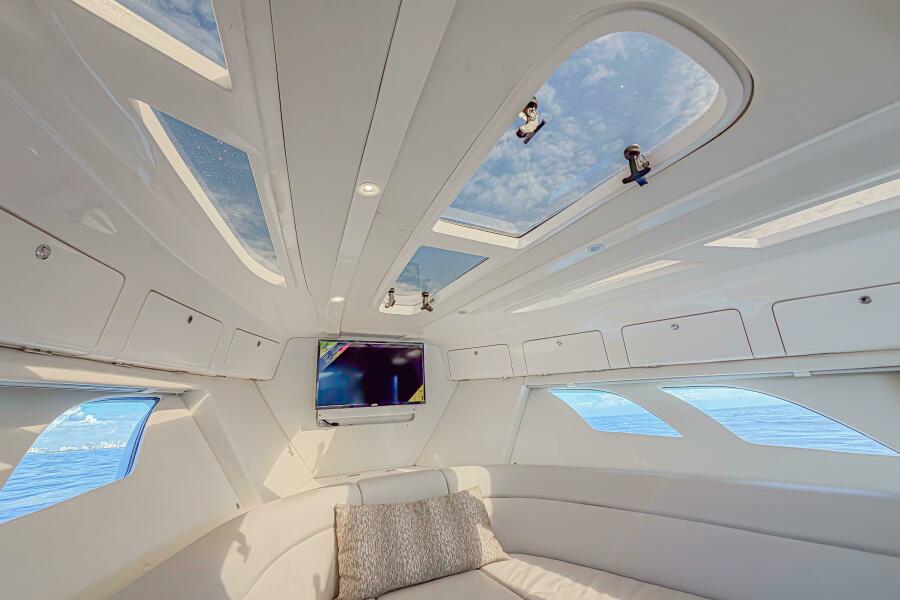 Sleek and stylish, the 407 CUDDY offers all the enhanced accommodations you would expect in a luxury performance cruiser. From a private head with shower stall and separate master berth with queen bed and hullside windows to a forward cabin section that easily converts to a large double berth. But none of it comes at the expense of the most advanced technology and fabrication techniques that deliver an incomparably smooth, dry ride with unparalleled performance. For divers and swimmers, it’s packed with thoughtful design features like a hullside dive door with step ladder and grab rails. Entertaining is elevated with cozy, custom seating and a stylish wet bar while serious sport fishermen will take note of the baitwells, rod holders, tank storage, tackle boxes and raw water washdown.