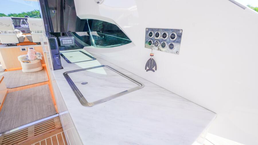 MARGO, the 2019 56’ Rio Yachts Colorado 56, is a striking Italian-built sport coupé that seamlessly blends cutting-edge engineering with traditional made-in-Italy craftsmanship. Designed in collaboration with Marino Alfani and Rio Yachts’ in-house team, she offers an elegant yet sporty profile with exceptional natural light and a versatile open-or-enclosed layout that fluidly connects interior and exterior spaces. Powered by twin Cummins 715HP diesel engines with Zeus pod drives, joystick control, SkyHook, and a bow thruster, MARGO delivers confident performance and effortless maneuverability. Her expansive glass, retractable cockpit enclosure, teak cockpit, and hydraulic swim platform create an inviting platform for entertaining and cruising. While the refined interior showcases premium finishes, Miele appliances, modern navigation, and impressive volume for her size—making her a standout choice for owners seeking distinctive Italian style, comfort, and real-world usability.