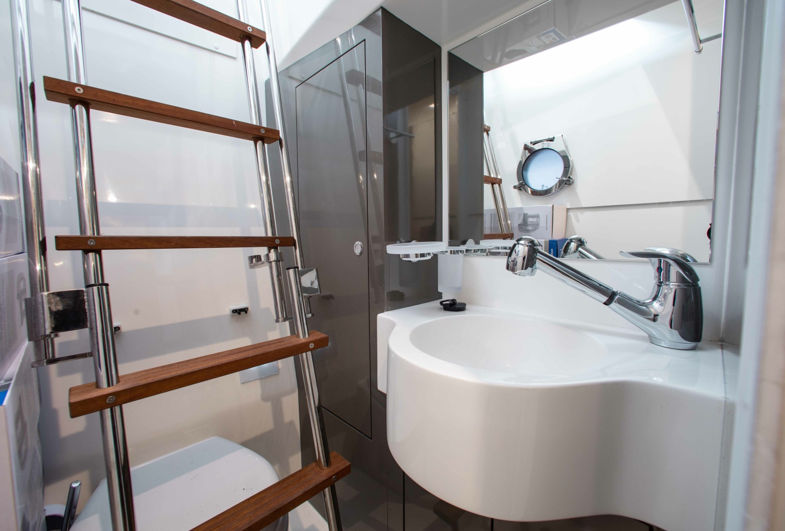 - Access to the storage area through stainless steel and teak steps