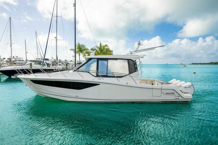 Fresh on the market, this single-owner 2023 Boston Whaler 405 Conquest is exceptionally well equipped and turnkey ready. Fully loaded with premium features including a Seakeeper, ice maker, triple Simrad GPS displays, autopilot, cockpit air conditioning, and climate-controlled living quarters, this vessel offers comfort and capability in any conditions. The well-designed layout includes two berths and a single head, making her ideal for both day trips and extended stays.