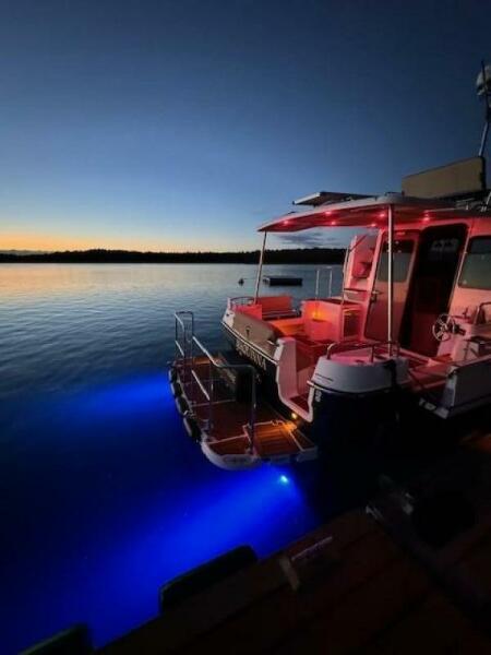 Courtesy lights, cockpit entry steps, swim step, and walkways