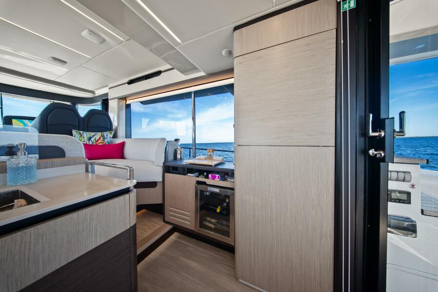 One of the standout qualities of this Navetta 48 is the abundant usable space for a vessel under 50 feet. Large windows and an open main-deck layout create a bright, airy feel, while the flybridge and aft cockpit provide comfortable areas for relaxing or entertaining without excess flash. Below deck, the accommodations are practical and inviting, well suited for extended weekends or longer coastal cruising.