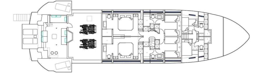 If the internal beach club is not being used as a multi-stage garage, it can serve as a relaxation area. Space is also available for an optional sauna, gym equipment, or water sports toys.