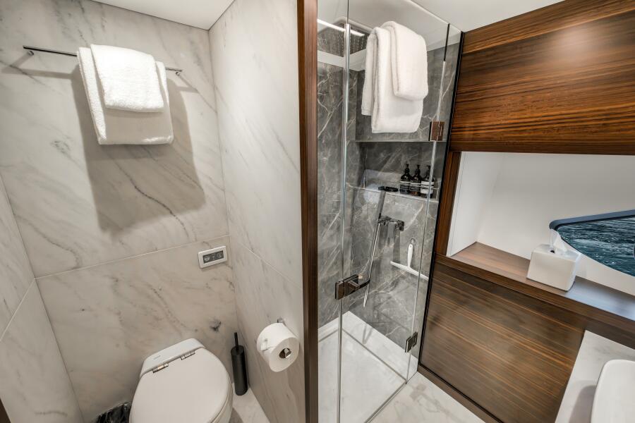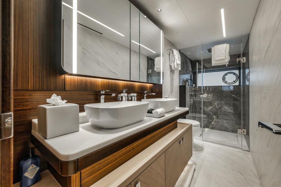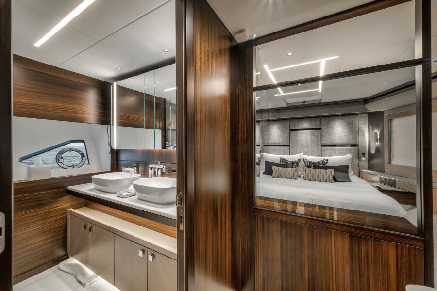 The Sunseeker 88 Yacht is known for its striking exterior lines, expansive outdoor entertaining areas, and refined interior craftsmanship. The layout offers generous accommodations with a large master and VIP, abundant natural light, and versatile social spaces ideal for both day yachting and extended cruising. She features the optional main-deck day head.